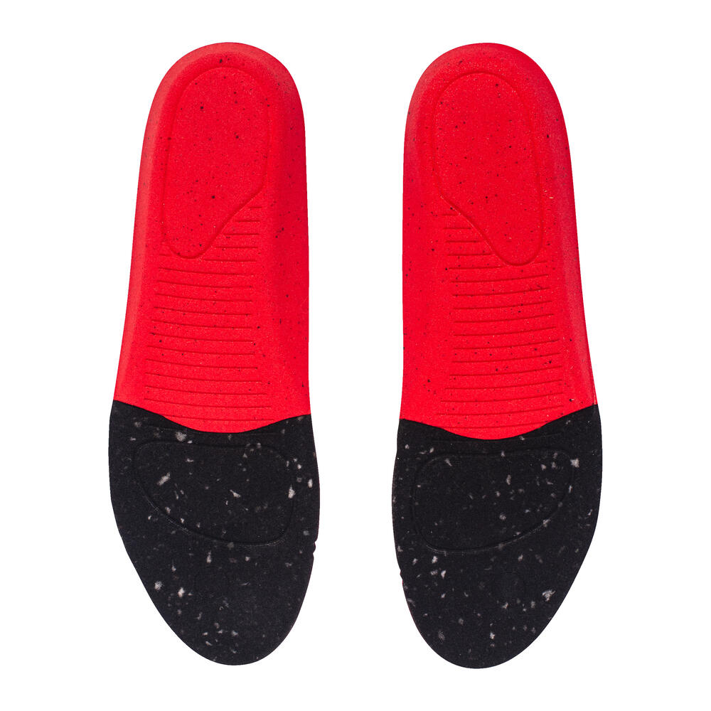 MaterialTextilschicht: Polyester, Carbon, Schwarze Schaumstoffschicht: Polyurethanschaum, Bindemittel auf PU-Basis, Carbon, Rote Schaumstoffschicht: (Zusammensetzung: Polyurethanschaum, EVA