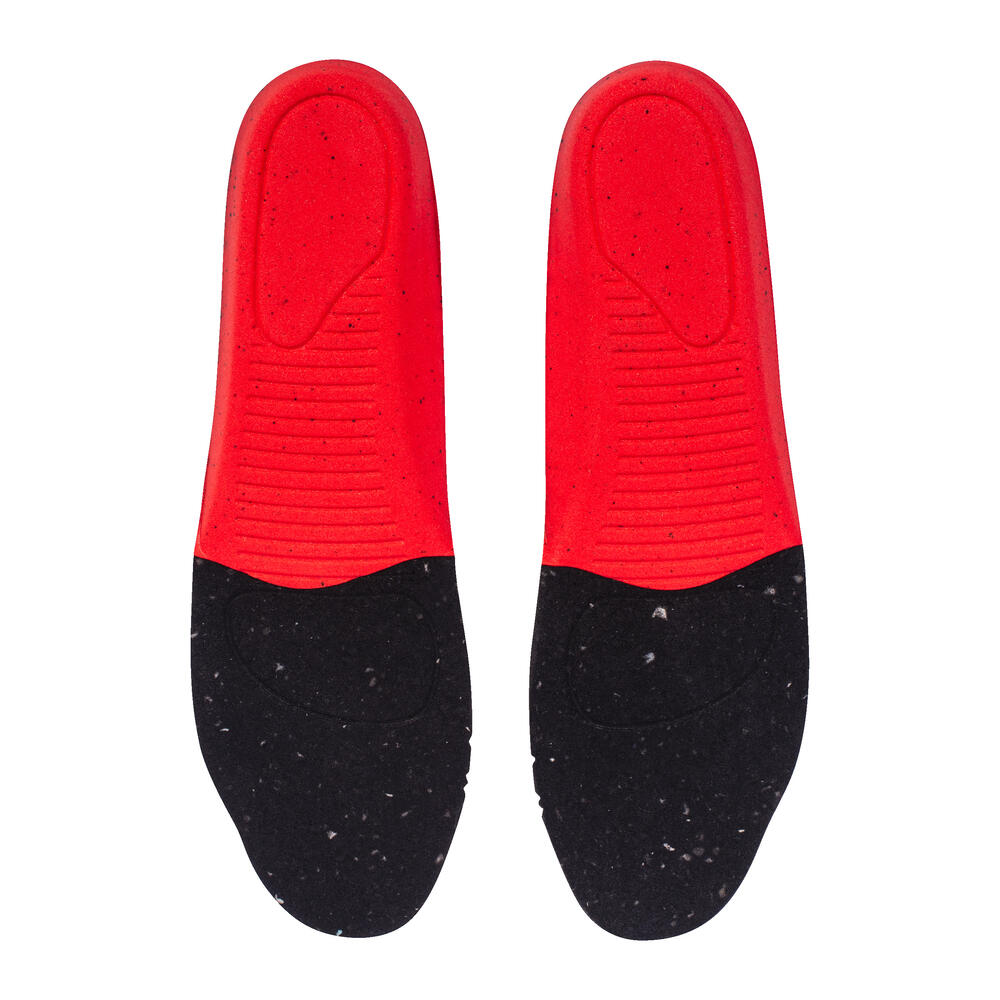 MaterialTextilschicht: Polyester, Carbon, Schwarze Schaumstoffschicht: Polyurethanschaum, Bindemittel auf PU-Basis, Carbon, Rote Schaumstoffschicht: (Zusammensetzung: Polyurethanschaum, EVA