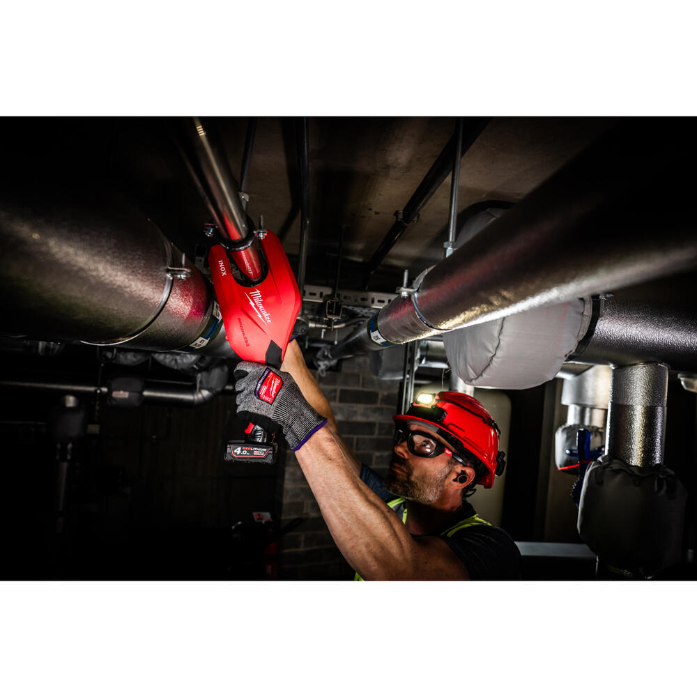 • Der MILWAUKEE® Akku-Edelstahl-Rohrabschneider XL ist in der Lage, verlegte Rohre aus Edelstahl, C-Stahl und Kupfer zu schneiden